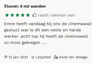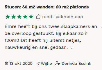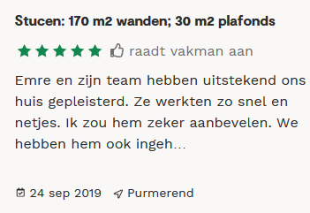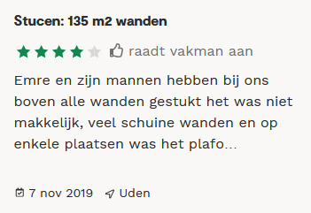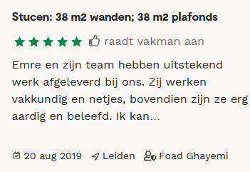 Kwaliteit en klanttevredenheid staan bij ons hoog in het vaandel. Zo krijgt u bij ons het beste advies mocht u nog niet precies weten hoe u uw muren wil hebben. Als gerenommeerd stukadoorsbedrijf zorgen wij voor de beste prijs-kwaliteitverhouding. Dat is terug te zien in de recencies die wij krijgen van klanten.